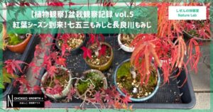【植物観察】盆栽観察記録 vol.5|紅葉シーズン到来!七五三もみじと長良川もみじ 紅葉シーズンに色づく七五三もみじと長良川もみじのようすを紹介。葉の色の変化や紅葉の特徴、お世話のポイントを観察記録としてまとめました。