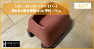 湿度を保つために初回から導入をしていました。1回目の脱皮はウェットシェルターで行ったのですが、たぶん湿度が高い場所がその辺しかなかったからでしょう・・湿度を高く設定できるアイテムなのですが、これだけではたぶん不足でも、日陰要素としてあった方が良い。