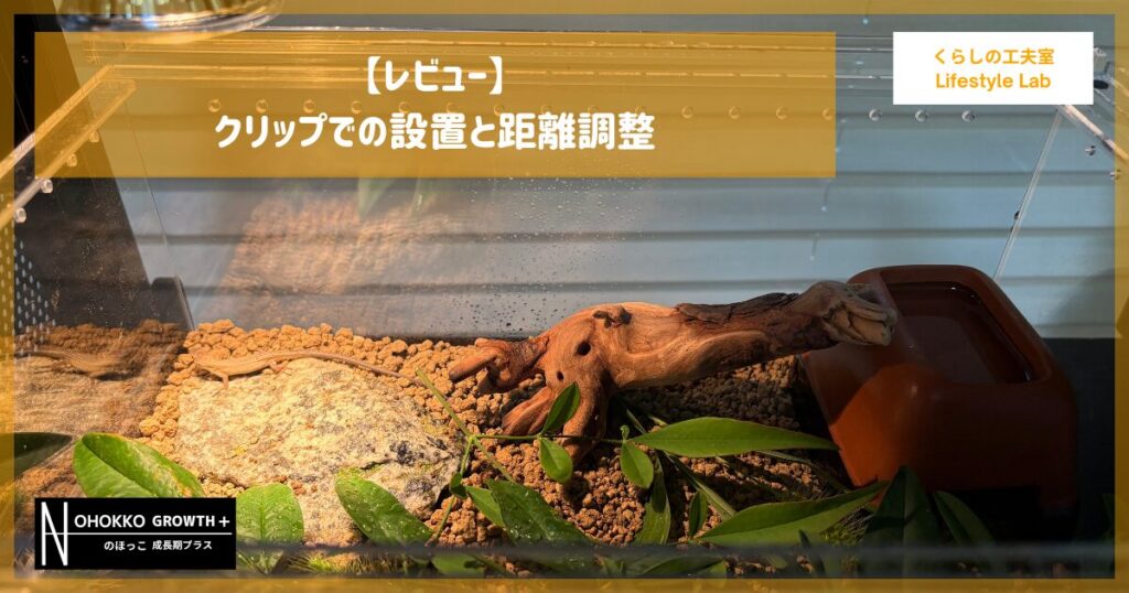 3. 適正な距離!設置位置とバスキングスポットの距離を近すぎないように。近すぎると熱くなりすぎるのでカナヘビなどにストレスとなります。